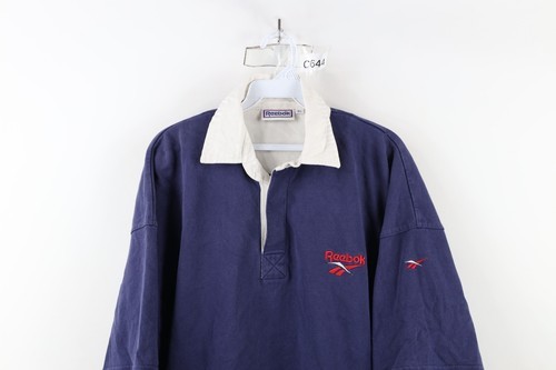 Vintage 90s Reebok Mens XL Faded Spell Out Heavyweight Rugby Polo Shirt Blue