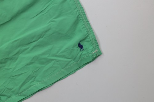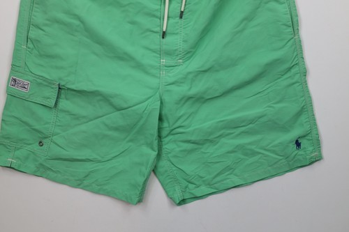 Vintage Y2K Ralph Lauren Mens XL Spell Out Lined Swim Trunks Shorts Lime Green