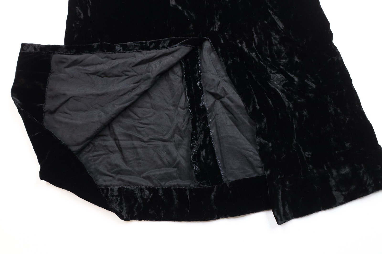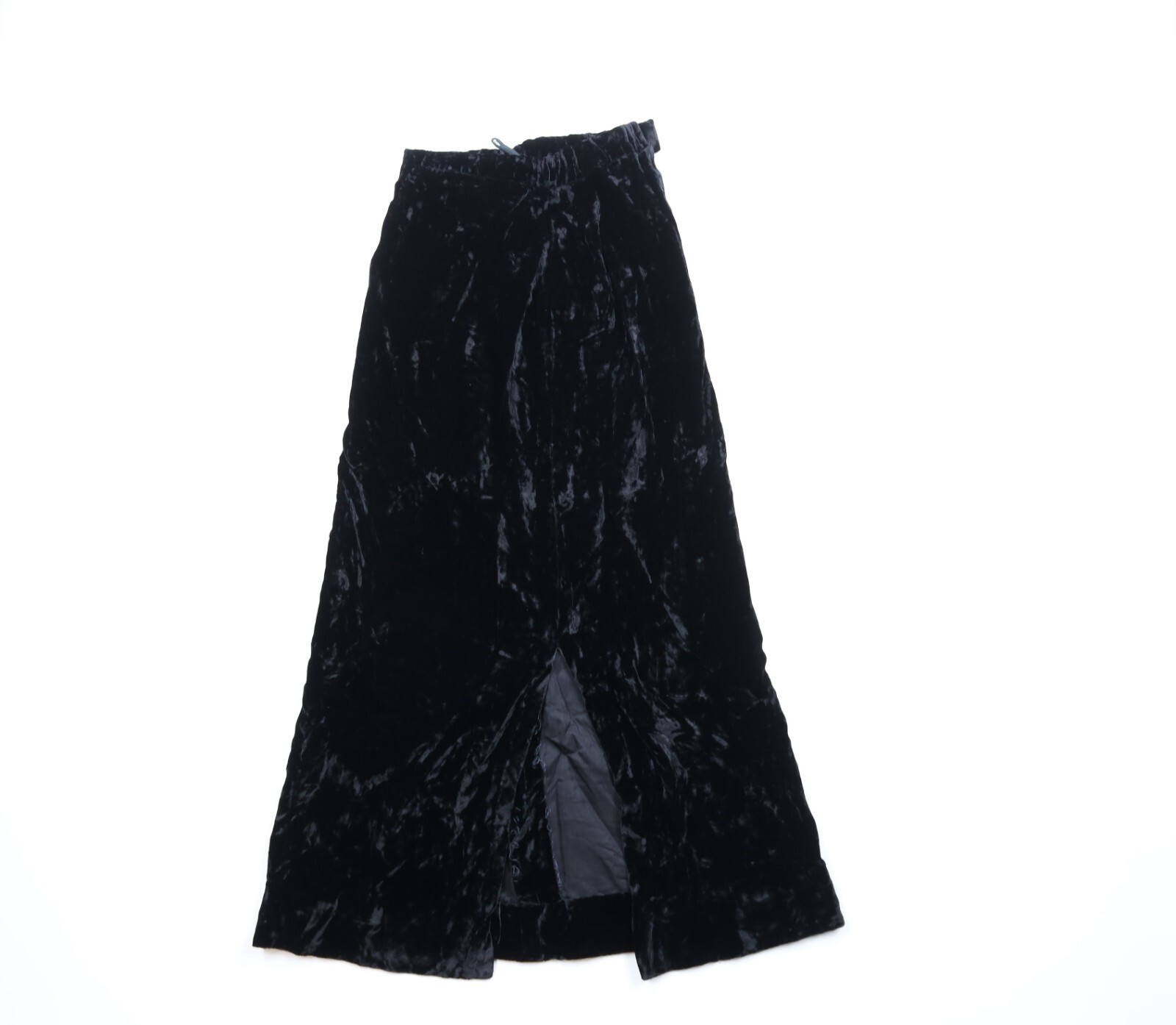 Vintage 60s 70s Womens 10 Crushed Velvet Velour Full Length Skirt Black USA
