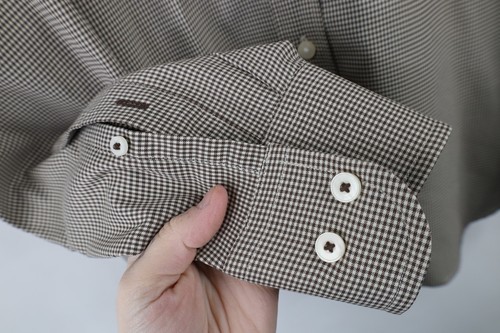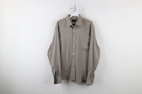 Untuckit Mens Medium Gingham Plaid Knit Collared Button Shirt Brown Polyester