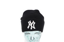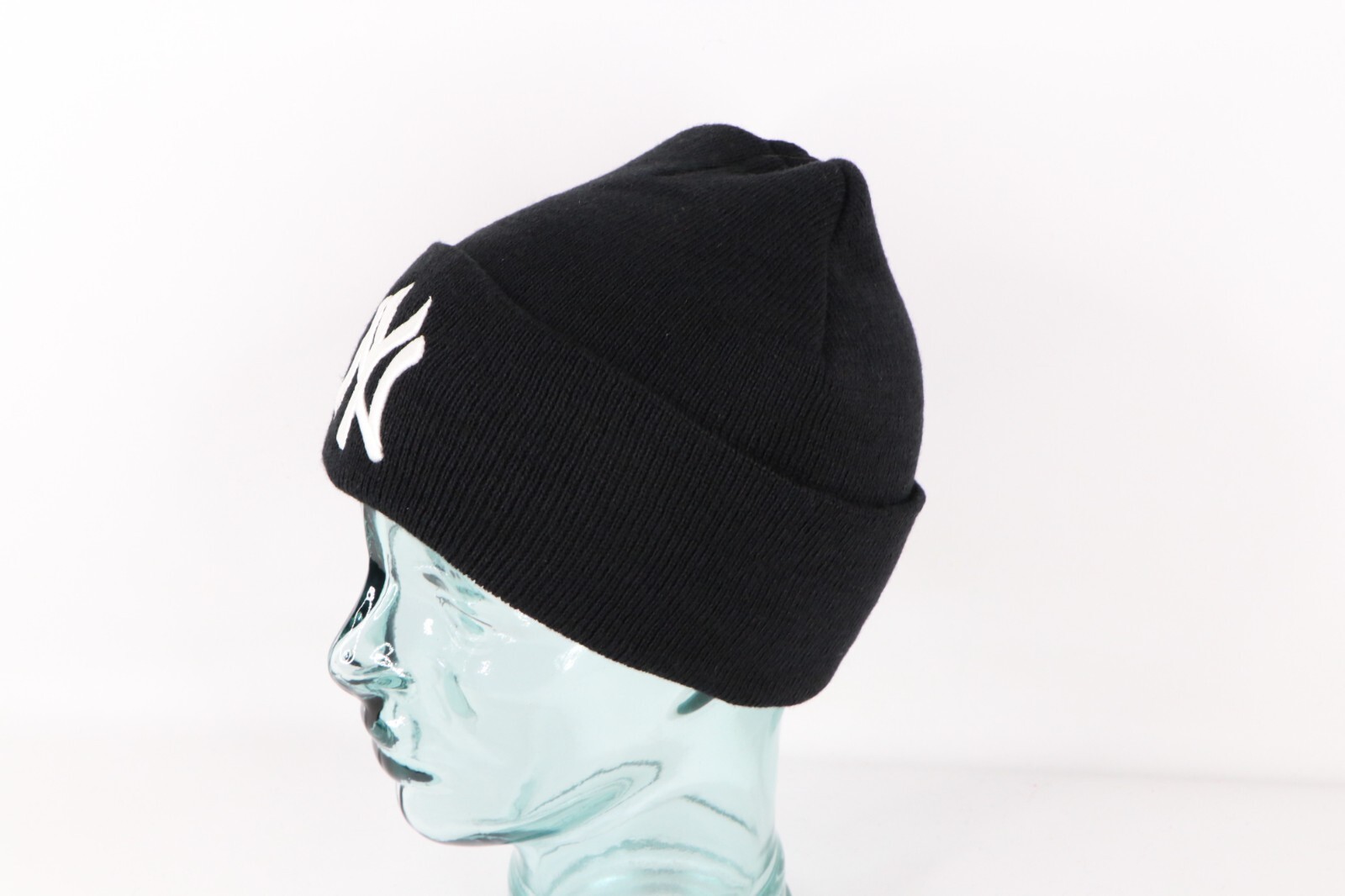 NOS Vintage Hip Hop New York Yankees Baseball Knit Winter Beanie Hat Black