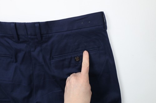 Blemishes front and back of both legs. Has color fade. Inseam was hemmed to a size 30. Tagged size 32 inch inseam but was hemmed