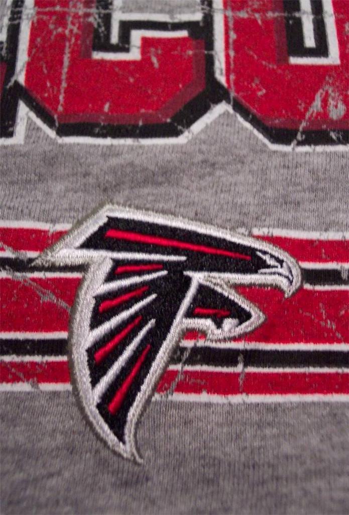 This is a VINTAGE STYLE ATLANTA FALCONS NFL FOOTBALL T-Shirt. It is a size LARGE and it is NEW with the tag. It is an official NFL TEAM APPAREL Shirt. It is 22 inches from armpit to armpit and 31 inches in length. The Falcon's Symbol in the middle is embroidered. The Print is made to look vintage. Combine auctions to save on shipping. D3AF