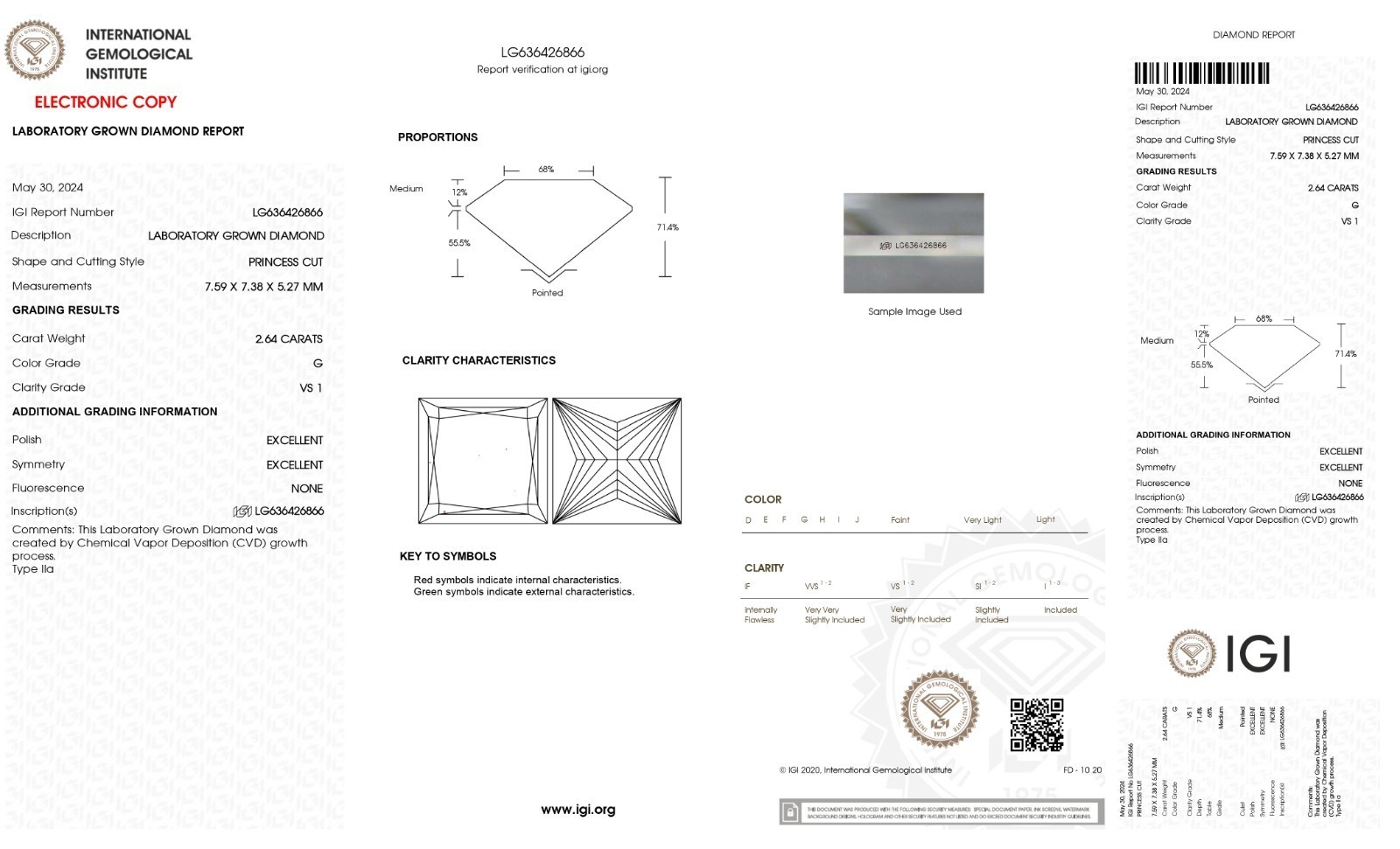 Lab Grown 2.64 Cts Princess Cut IGI and 43 similar items
