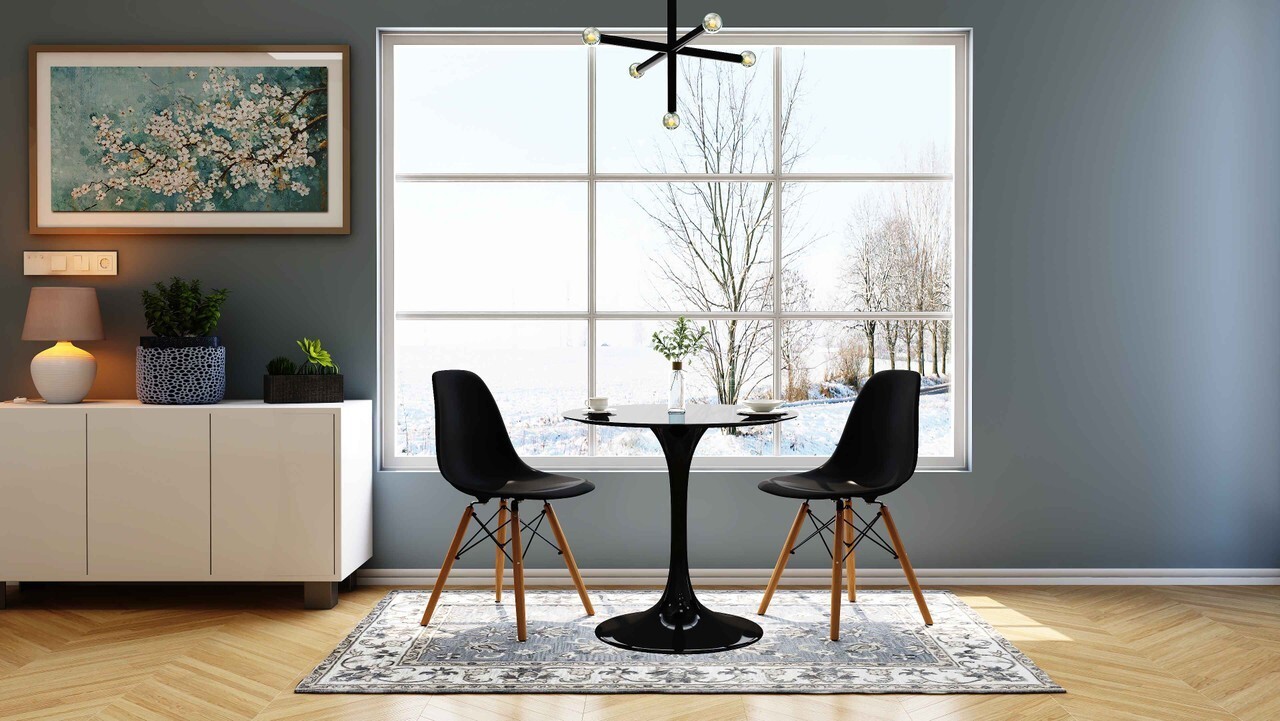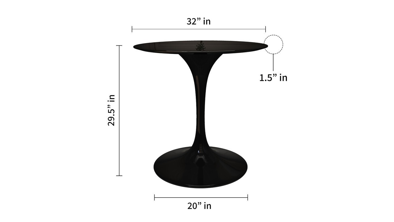 36" BLACK MID-CENTURY MODERN TULIP DINING TABLE WITH FIBERGLASS TOP AND ALUMINUM CAST BASE