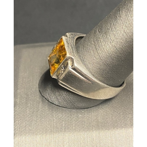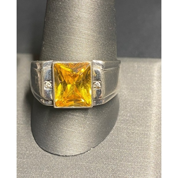 UNISEX 925 STERLING SILVER NATURAL DIAMONDS AND YELLOW GEM RING SIZE 11 SKY