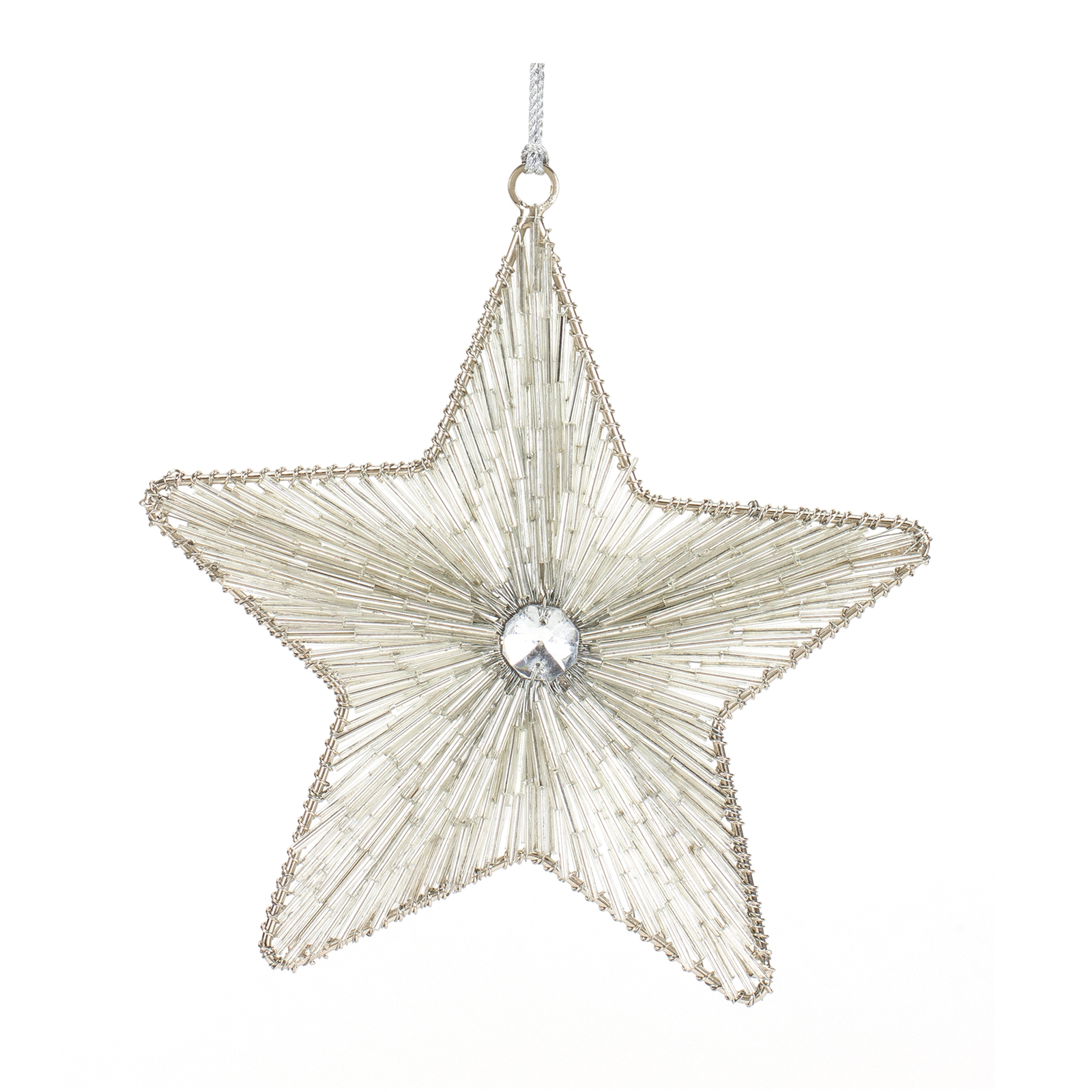 Elegant Design: Classic star shape with a shimmering silver finish and intricate glass bead detailing. Durable Long-Lasting: Made from high-quality iron metal to ensure years of holiday enjoyment. Versatile Holiday Decor: Perfect for Christmas trees, garlands, wreaths, or as thoughtful gifts for friends and family. Suitable for indoor use only