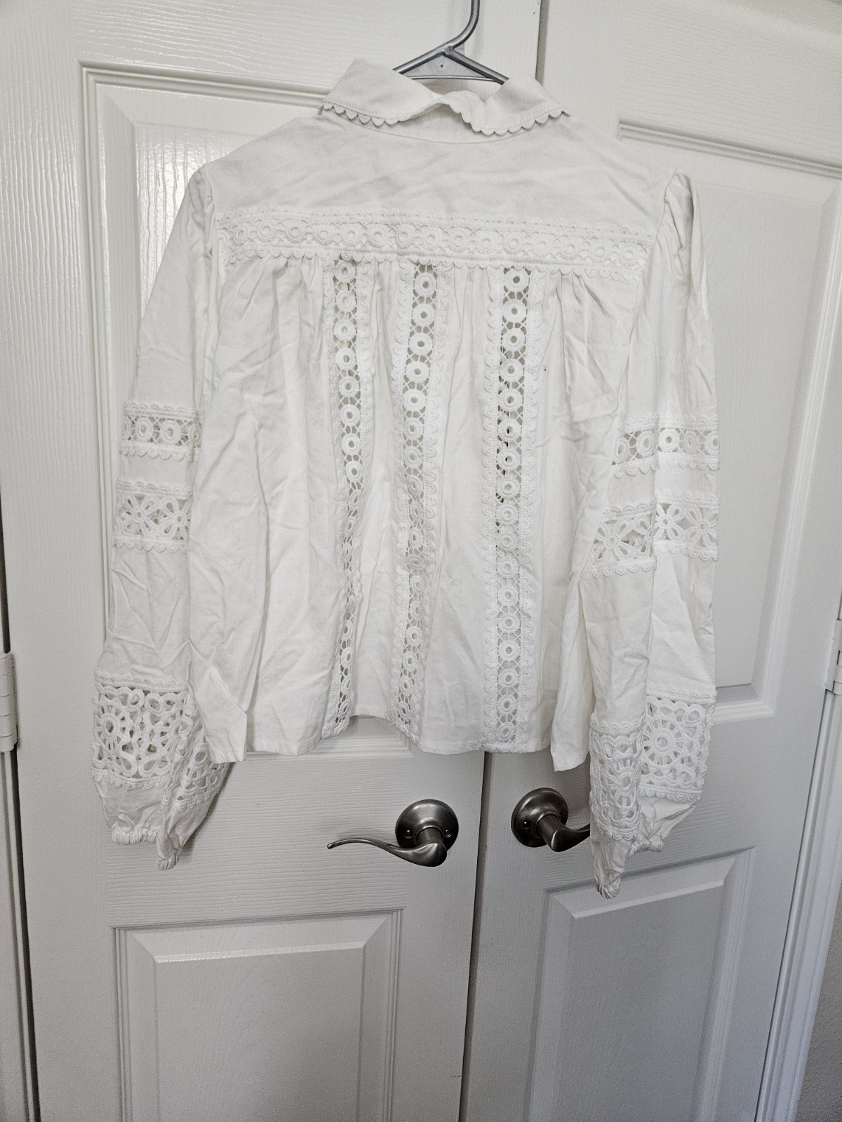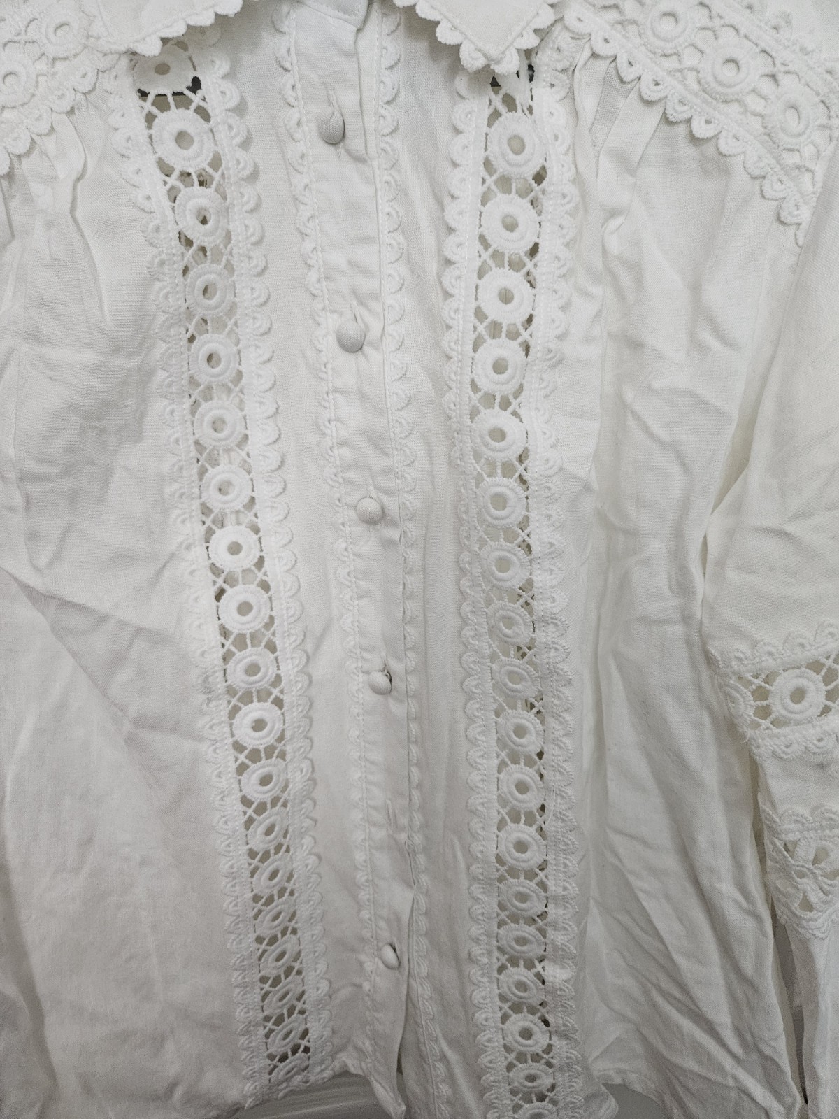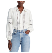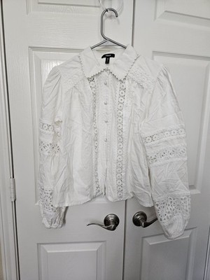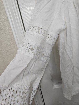 Aqua Women's White Linen Blend Lace Button Up Shirt Sz MEDIUM NWT
