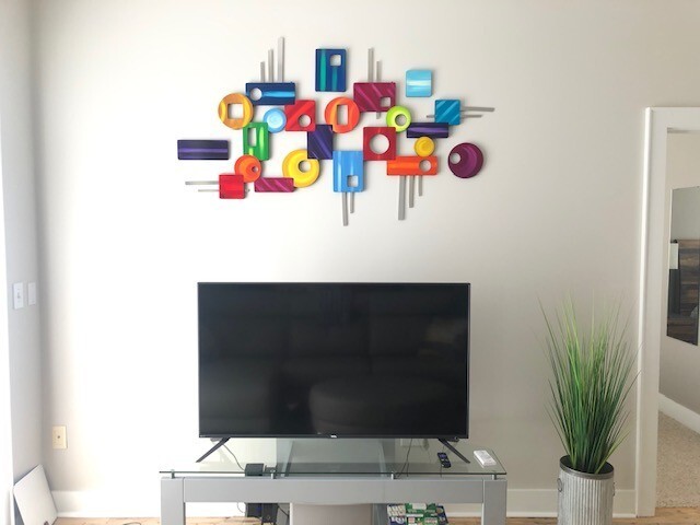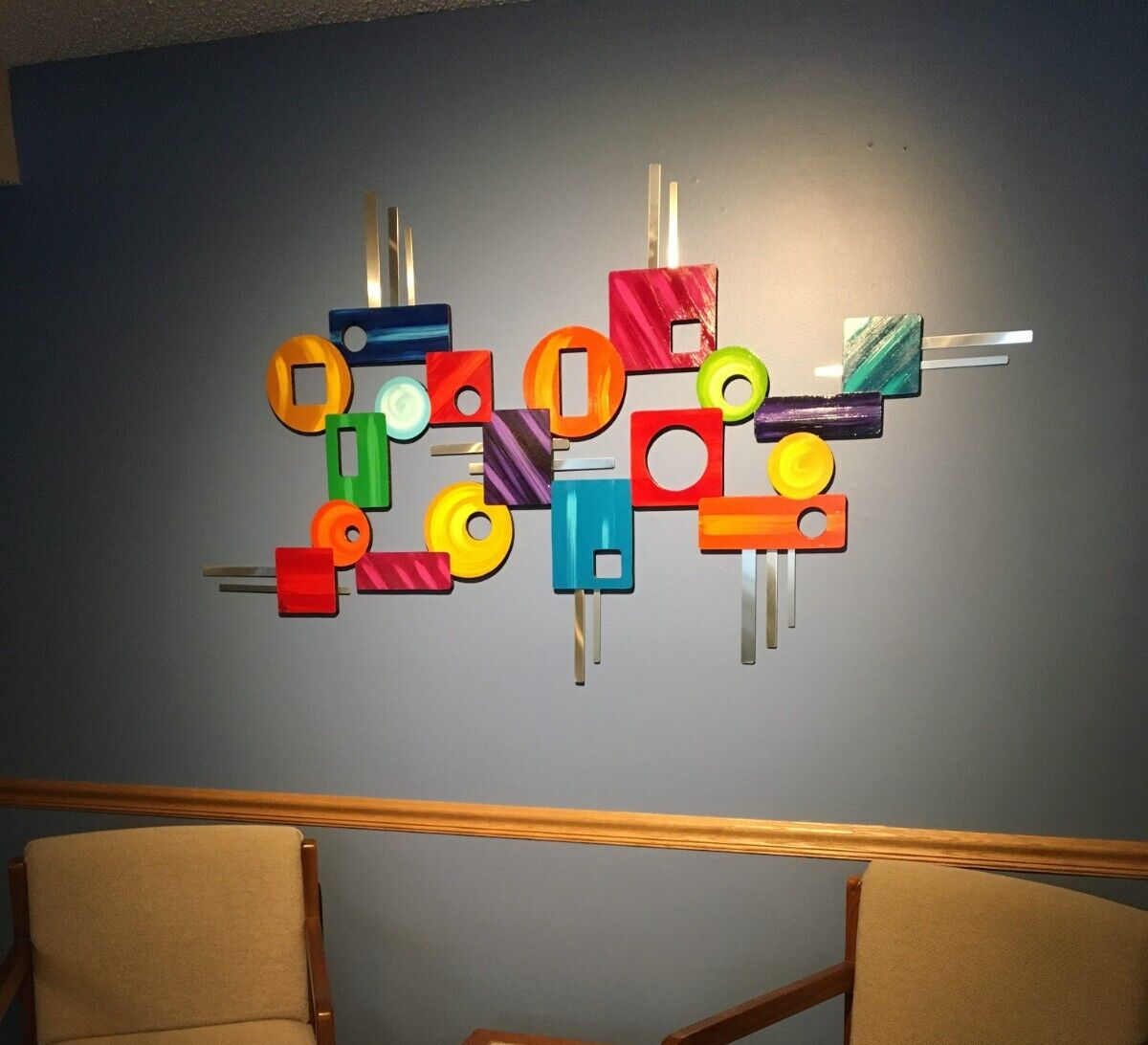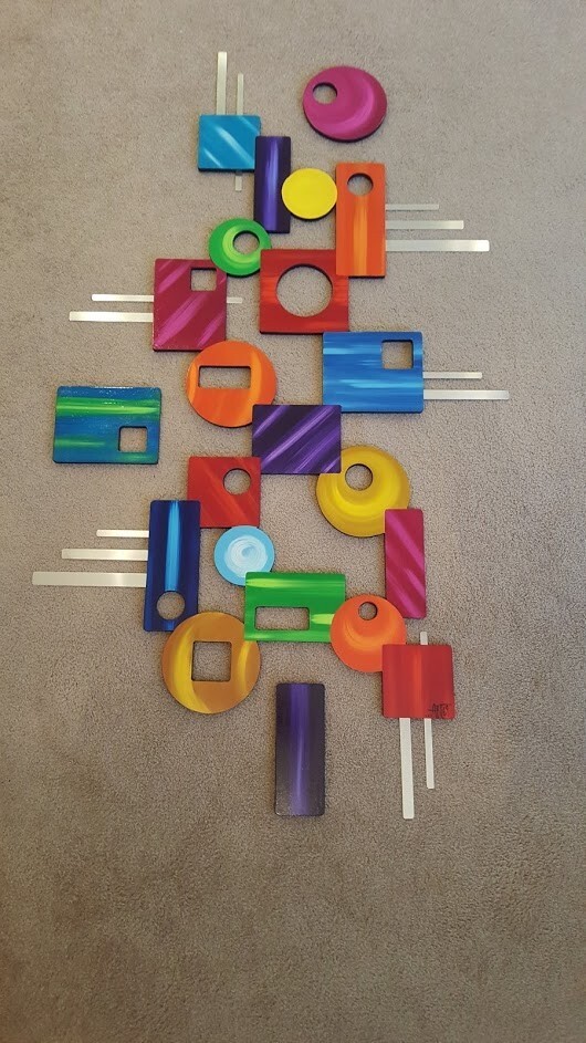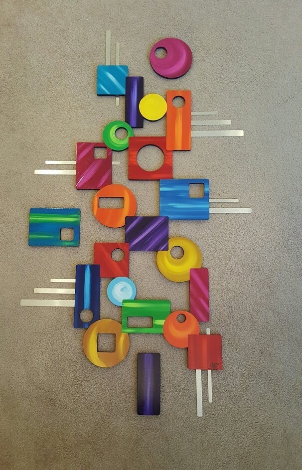 This geometrically designed wall sculpture will bring life to any wall and brighten up space in your home or office.