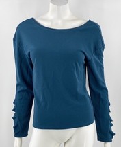 Bar III Top Medium Teal Blue Ruffle Sleeve Solid Boatneck Shirt Womens