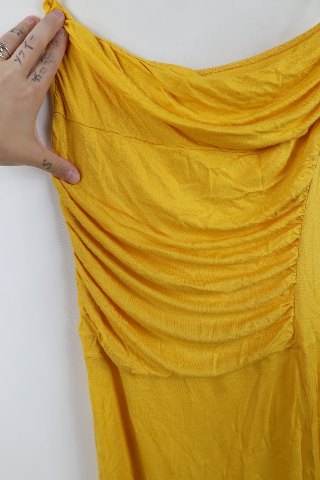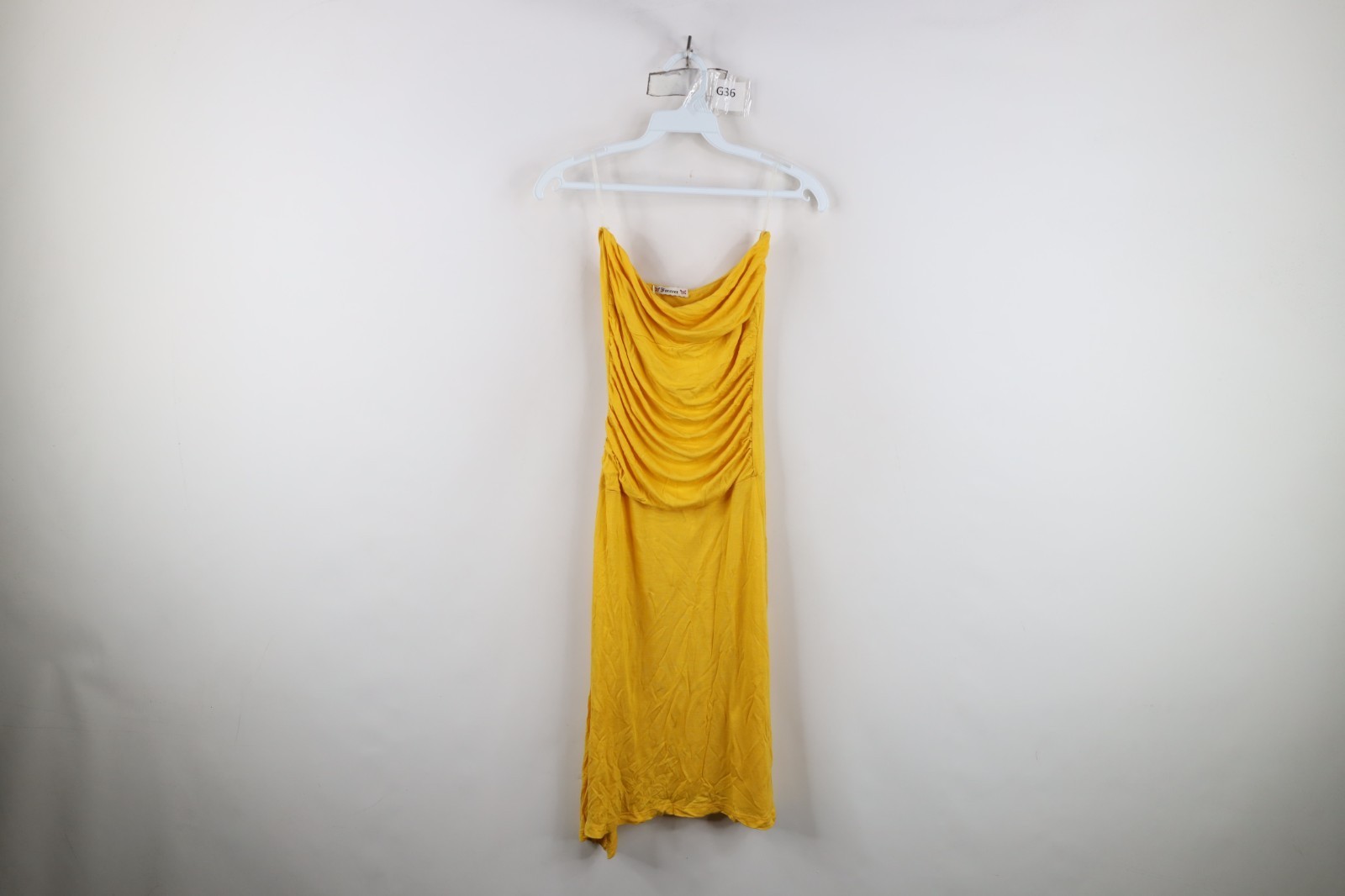 Vtg Y2K Forever 21 Womens XS Bella Babydoll Jersey Knit Strapless Dress Yellow