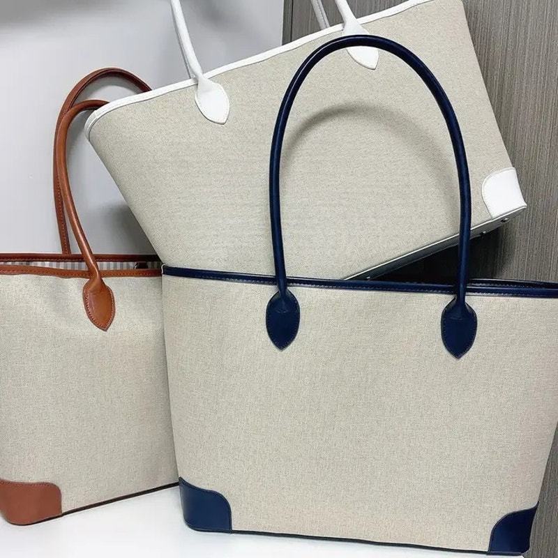 Carryall Shopper Tote Bag Beige Navy Blue and similar items