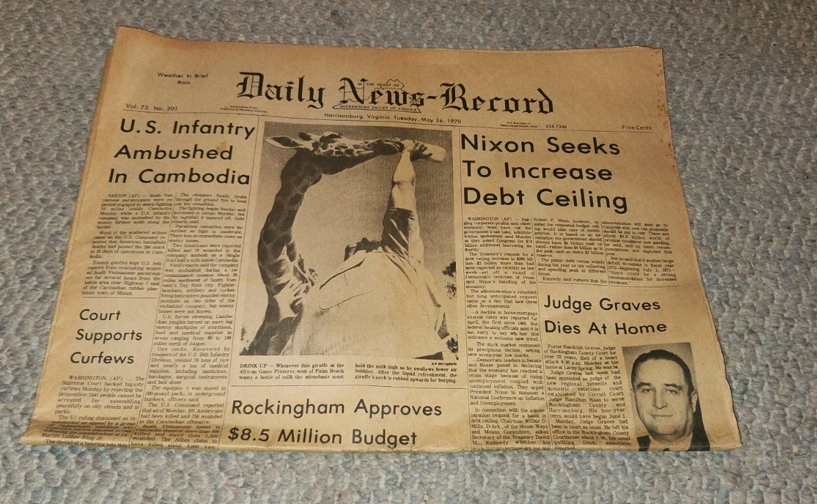 VTG Nixon Debt Cambodia May 1970 News Paper Daily New Record Harrisonburg Va