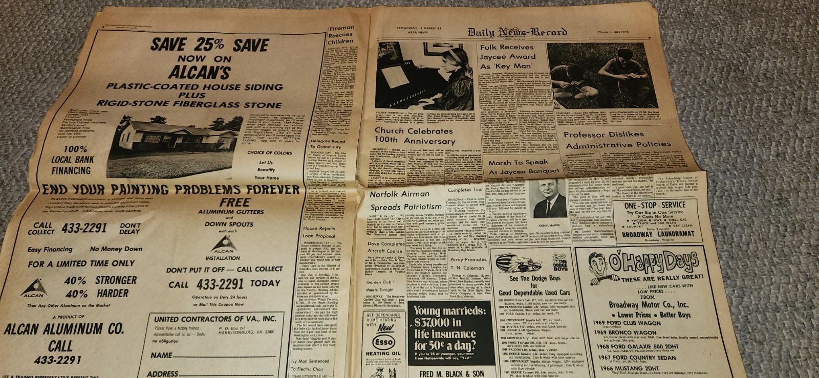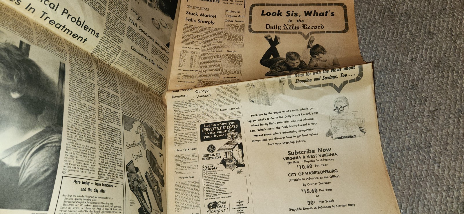 Good used condition newspaper. Harrisonburg Virginia. Nixon. Cambodia stories