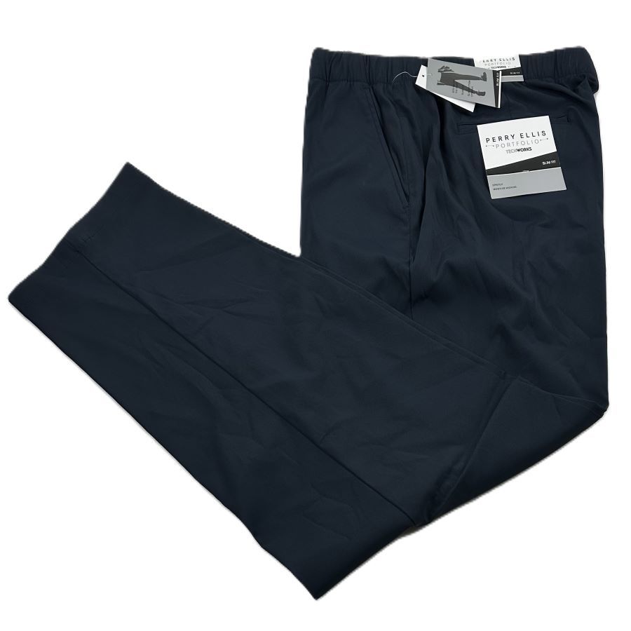 Perry Ellis Portfolio Men's Slim-Fit Drawstring Dress Pants - Dark Sapphire-2XL
