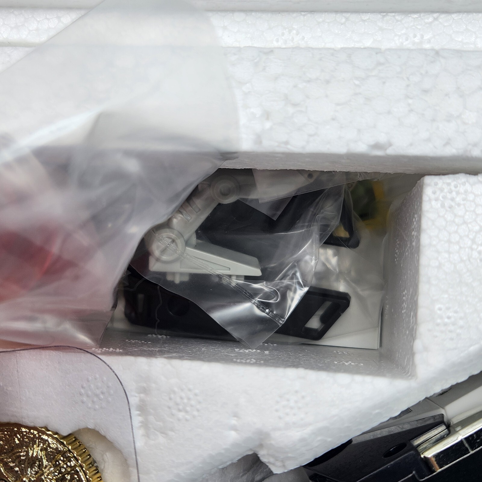 The styrofoam on the side that has the tape cut, has a rip. The original owner ripped a piece off, and then taped it back into place