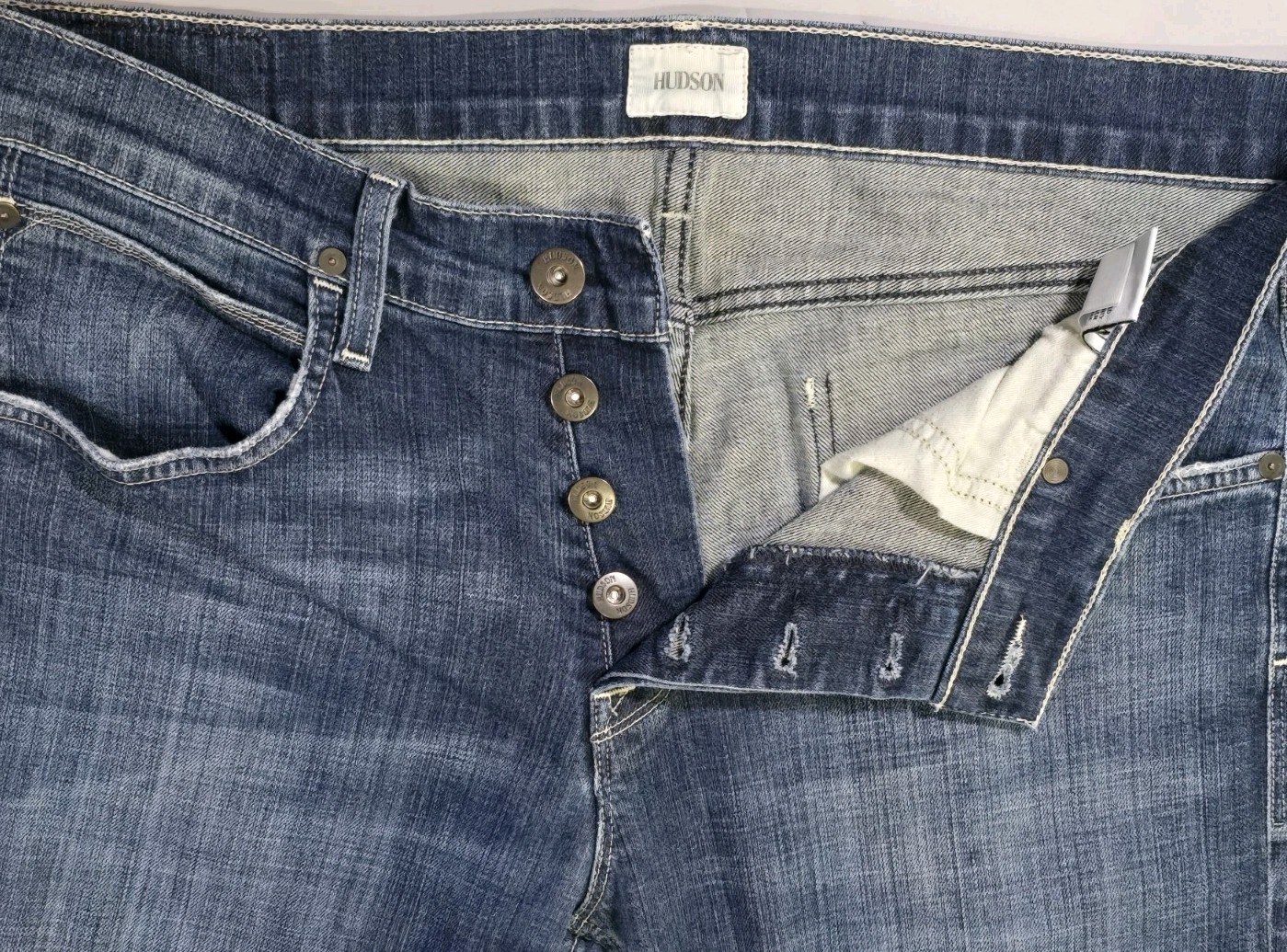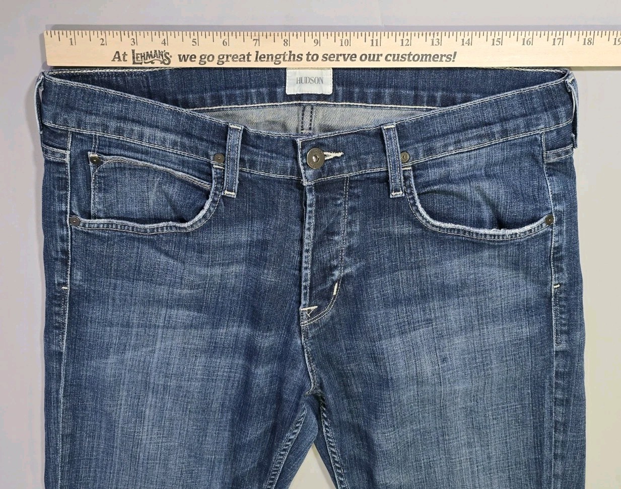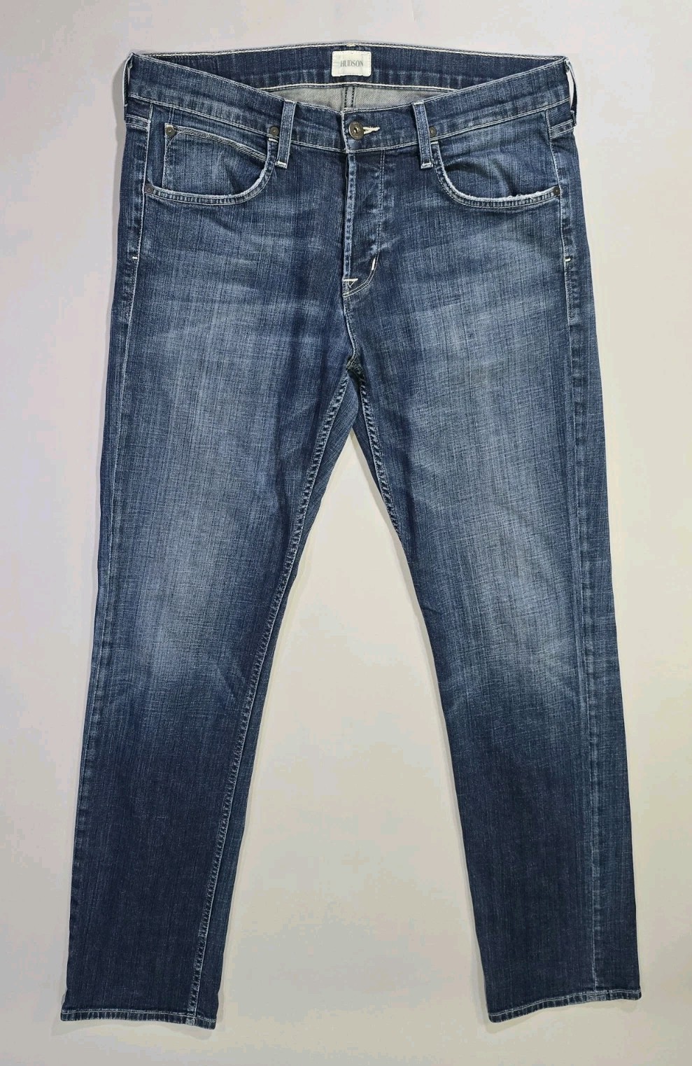 Hudson Byron Straight Jeans Mens 34x34 Maya Blue Dark Stretch Denim Button Fly