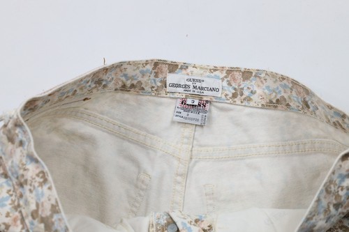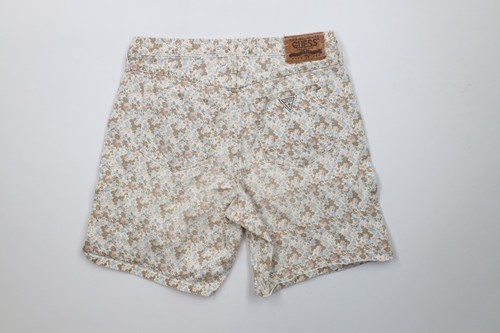Vtg 90s Guess Womens 3 Faded Flower All Over Print Button Fly Denim Shorts USA