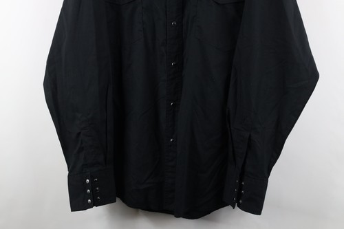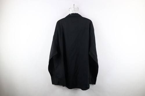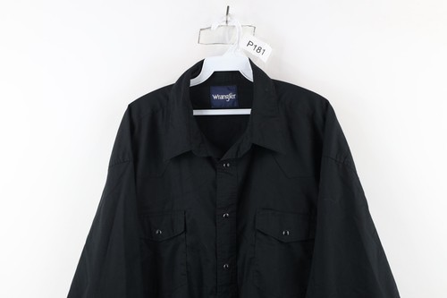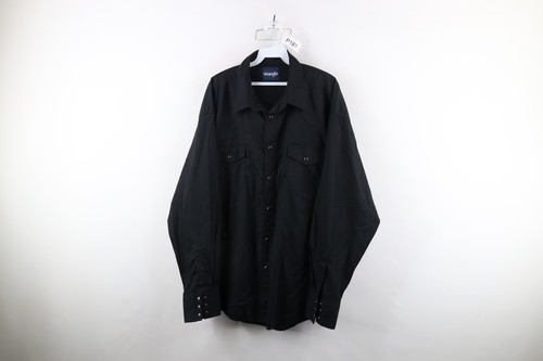 Vtg 90s Wrangler Mens 2XL Faded Western Rodeo Snap Button Collared Shirt Black