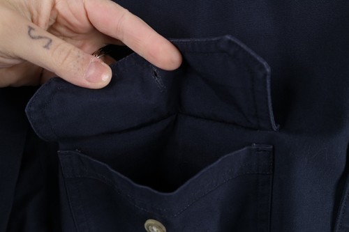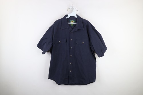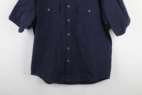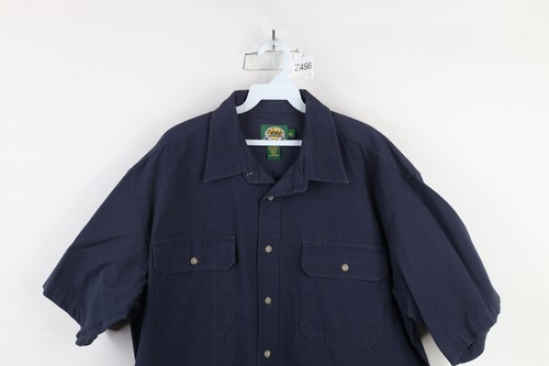 Vintage Cabelas Mens Large Faded Heavy Canvas Safari Bush Button Shirt Blue
