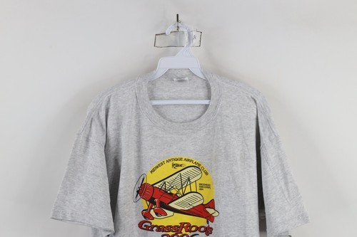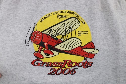 Vtg Y2K 2006 Mens XL Midwest Antique Airplane Club Grass Roots T-Shirt Gray