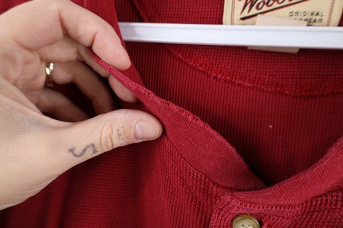 Vintage 90s Woolrich Mens XL Faded Blank Thermal Waffle Knit Henley T-Shirt Red