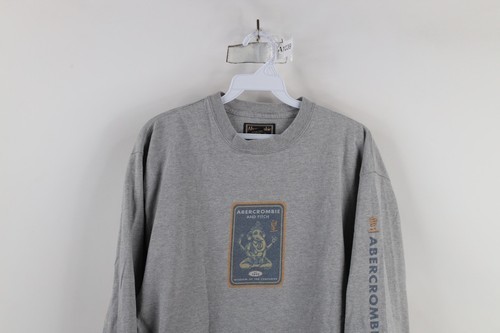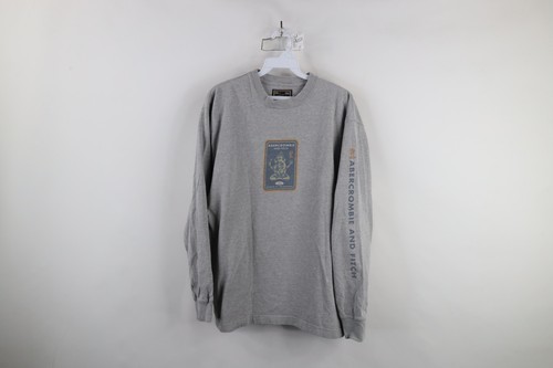 Vtg 90s Abercrombie Fitch Mens M Hindu Ganesha Long Sleeve T-Shirt Gray USA