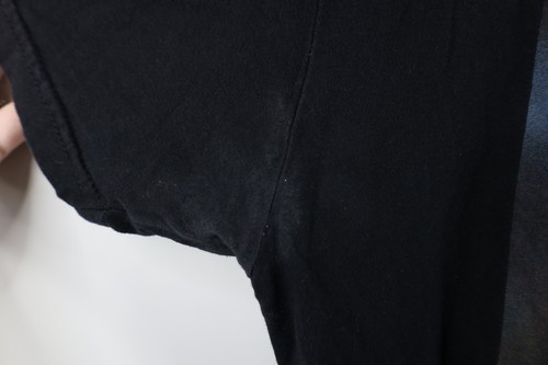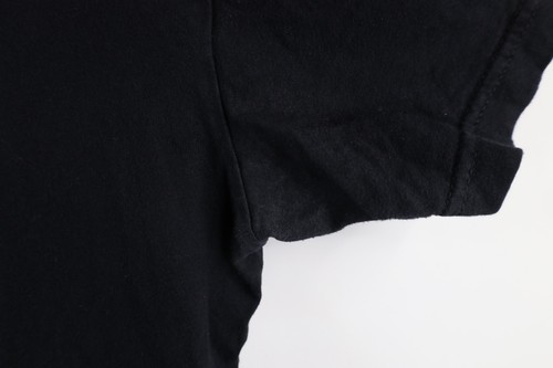 Armpits blemished. Color fade. Graphics distressed