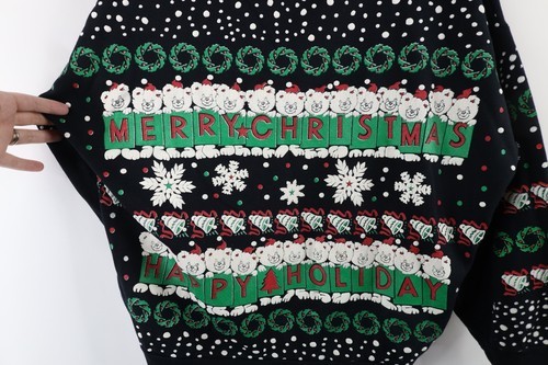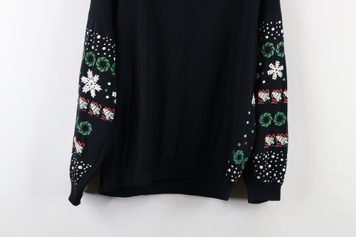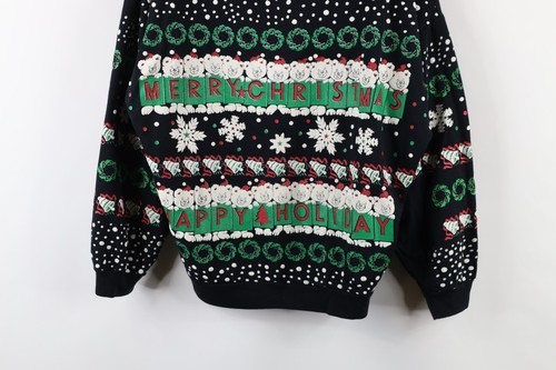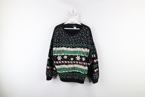 Vtg 90s Streetwear Womens Medium All Over Print Christmas Crewneck Sweatshirt