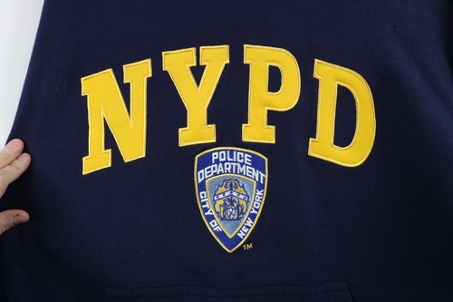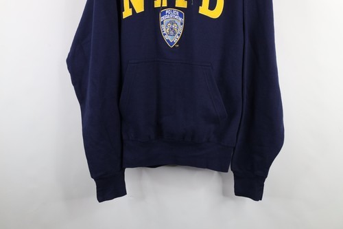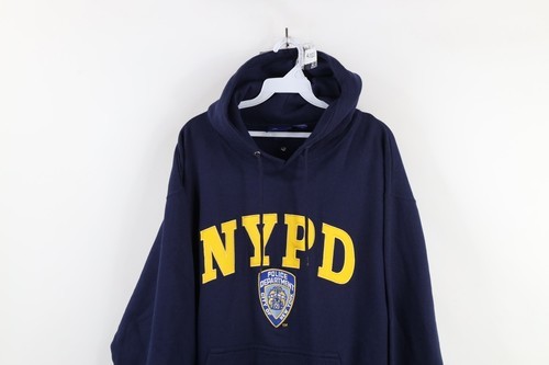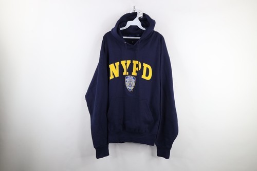 Vintage Y2K 2006 Mens Large Faded Spell Out NYPD New York Hoodie Sweatshirt Blue
