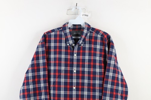 Bonobos Mens Size Large Slim Fit Oxford Collared Button Down Shirt Plaid Cotton