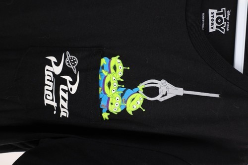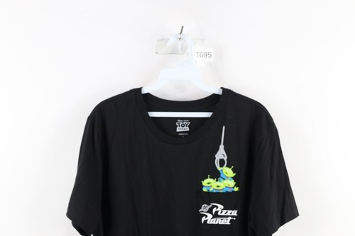 Vtg Disney Toy Story Mens Large Spell Out Pizza Planet Green Alien T-Shirt Black