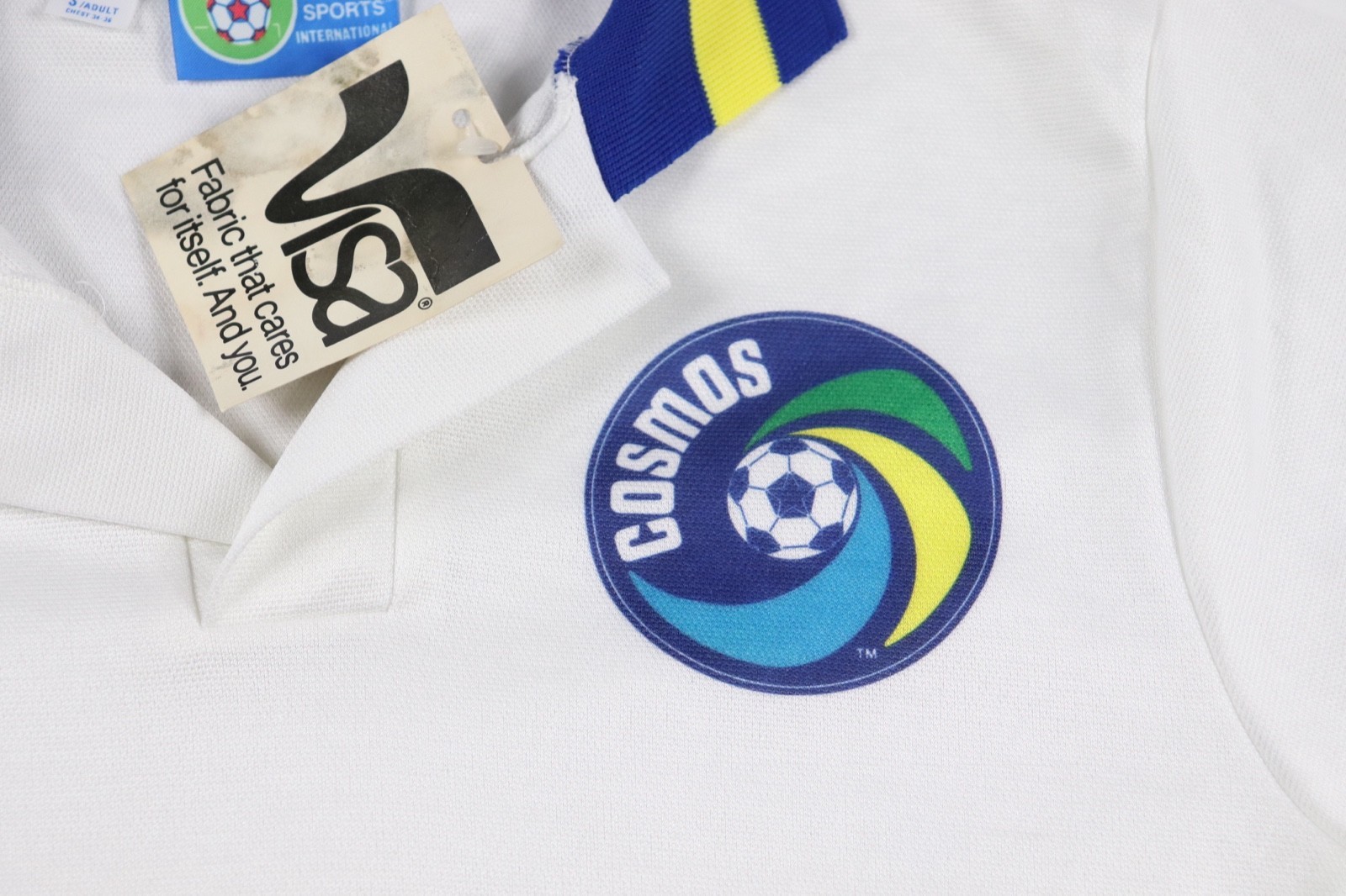 Deadstock Vtg 80s Mens Small Spell Out NASL New York Cosmos Soccer Jersey White