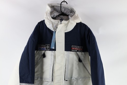 NOS Vintage 90s South Pole Mens XL Spell Out Hip Hop Hooded Puffer Jacket White