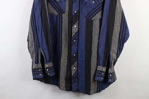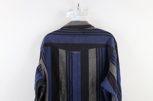 Vintage 90s Wrangler Mens XLT Faded Striped Flannel Western Snap Button Shirt