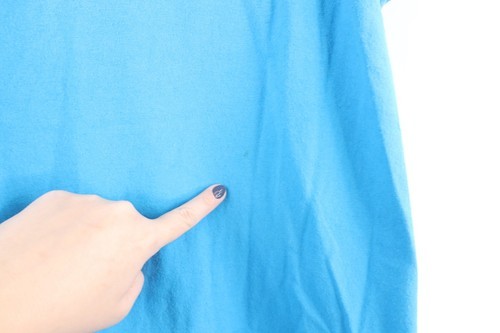 Has stains on front and bottom and back bottom. Has cracking on front graphic