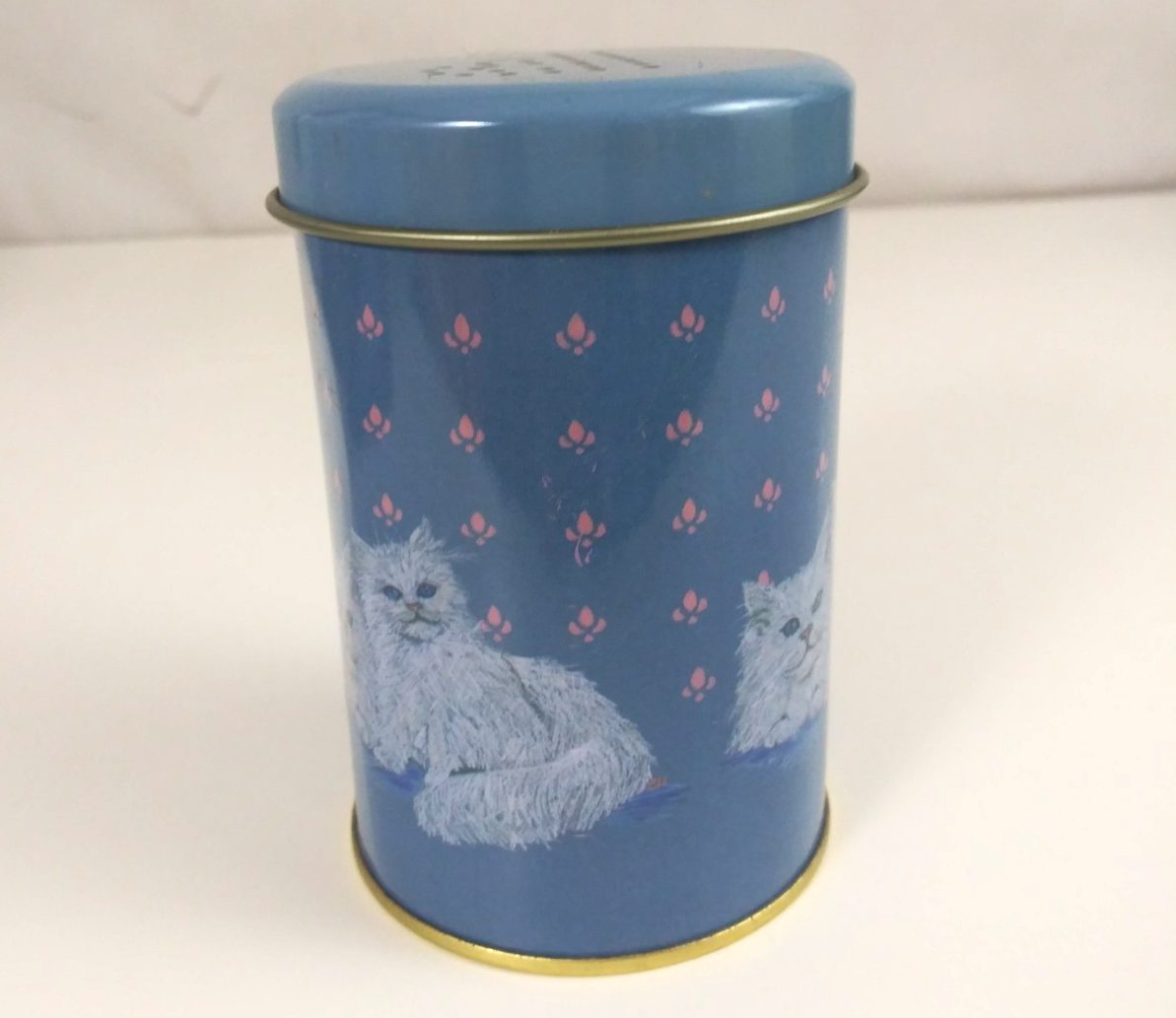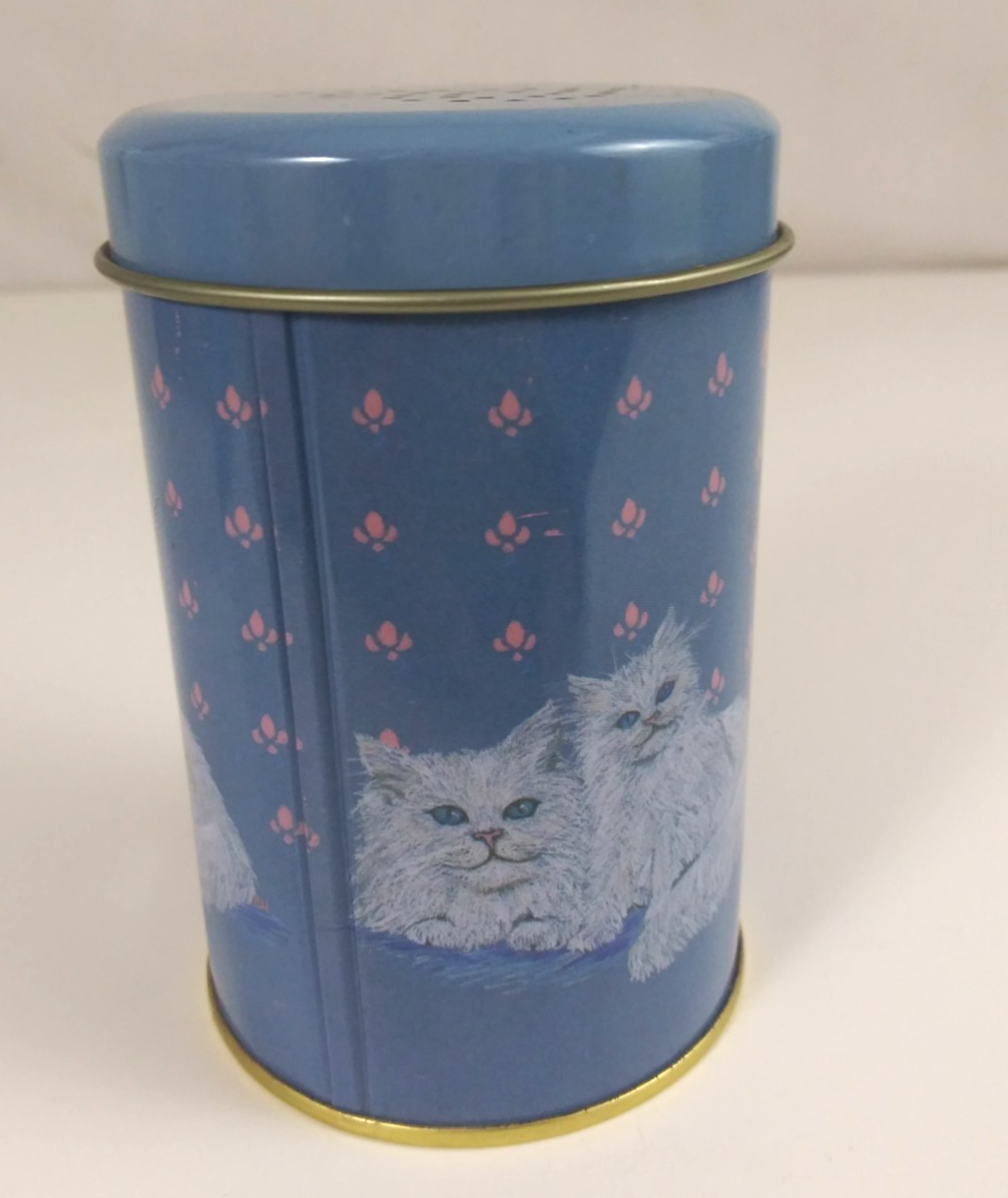 Vintage White Kitty Cats Blue Floral Tin and 6 similar items