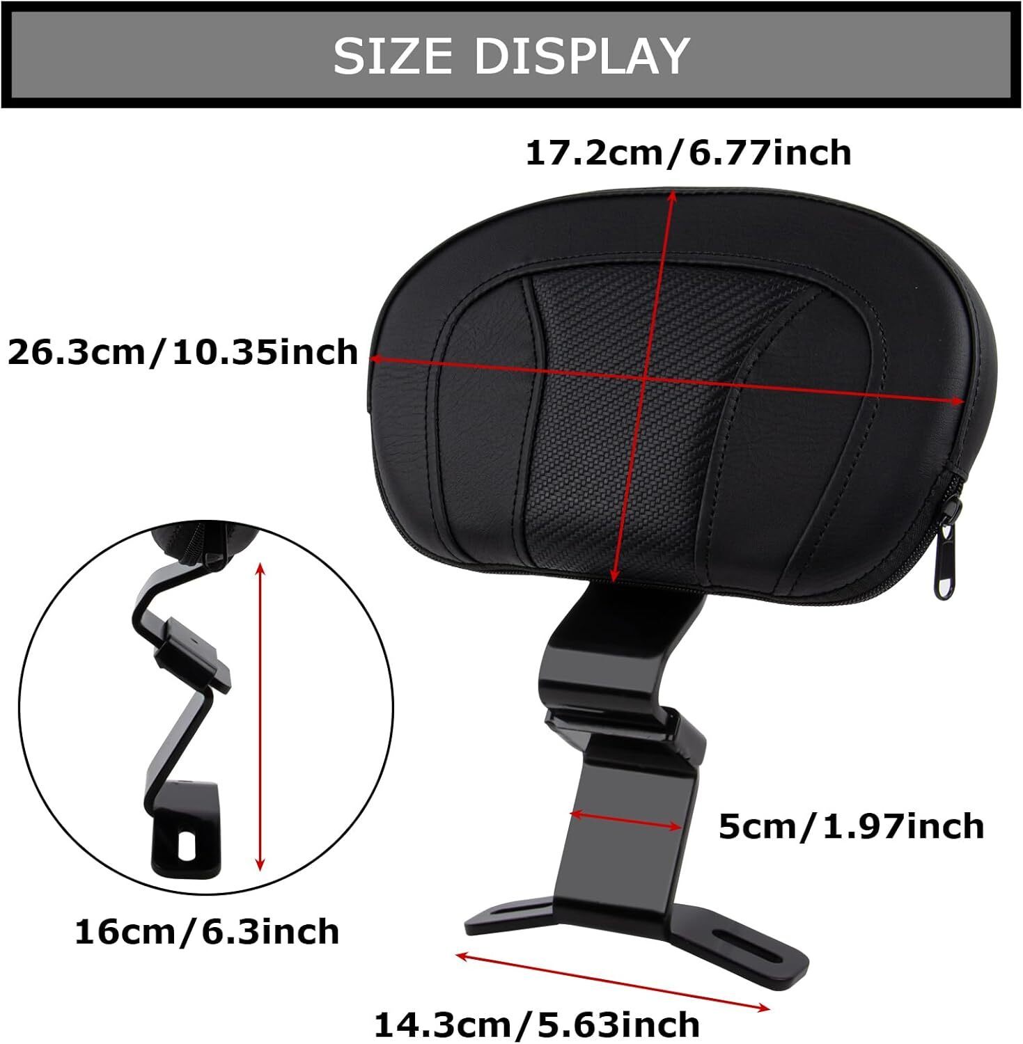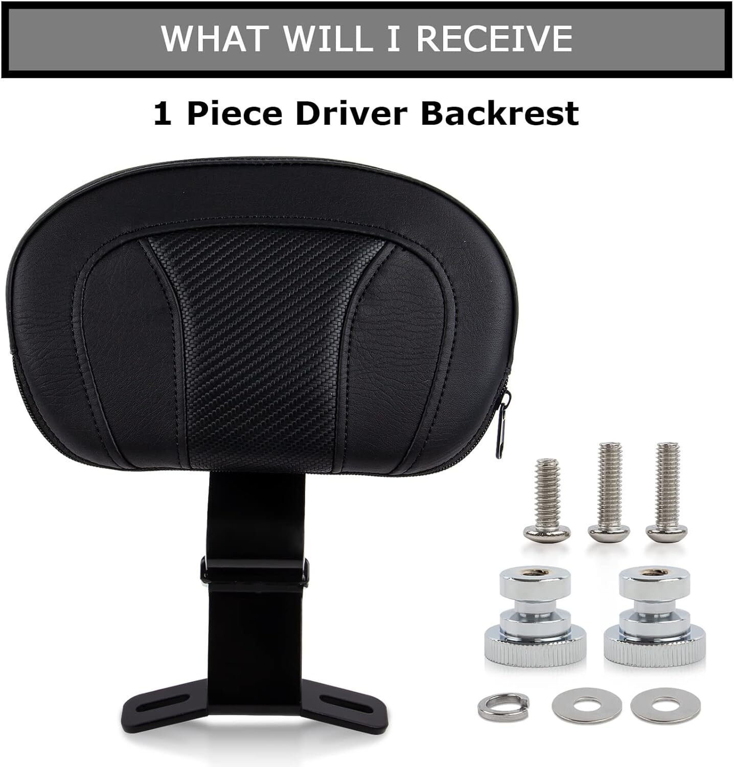 ENHANCED RIDING COMFORT - Our rider backrest is designed to provide ultimate comfort for long rides. The ergonomic design and front-to-back movement allow you to find the perfect position to support your back and reduce fatigue, ensuring a more enjoyable riding experience. SUPERIOR DURABILITY - Our Driver backrest are constructed from premium microfiber leather, foam, iron, PP plastic to withstand the rigors of daily use. It is sturdy and durable, ensuring that it can be used for many years without losing shape or effectiveness. Invest in our rider backrests for long-lasting support and peace of mind. EASY INSTALLATION AND COMFORT - Our front driver rider backrest pad are designed for easy installation. Contains all the necessary hardware so you can quickly and easily install it on your motorcycle seat. Additionally, it can be adjusted front and rear to accommodate riders of different heights, allowing everyone to find their best riding position. VERSATILE COMPATIBILITY - Adjustable Rider Driver Backrest Pad is compatible with Touring CVO Road Glide Road King Electra Glide Street Glide FLHR FLTRX FLHX FLHT 2009-2023, This Backrest Only Used to the matching Two-up seats and not for one-piece seat.Our sissy bar can be easily installed and adjusted to suit your specific needs. STYLISH DESIGN - Combining functionality with style, our driver backrest features a sleek and modern design that enhances the overall aesthetics of your motorcycle. The black finish and streamlined shape seamlessly integrate with your bike's appearance, adding a touch of sophistication while providing exceptional comfort and support. Elevate your riding experience with our stylish driver backrest.
