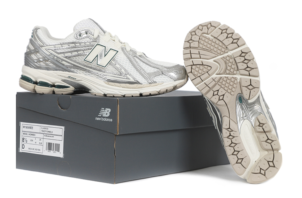 Main Features ---Brand : New Balance ---Gender : Unisex Adults ---Material : Upper : Polyester 100%, Synthetic Leather ---MPN : M1906REE ---Color : Silver Metallic / Sea Salt ---Size : 220 ~ 280 mm / US Size: 4 ~ 10