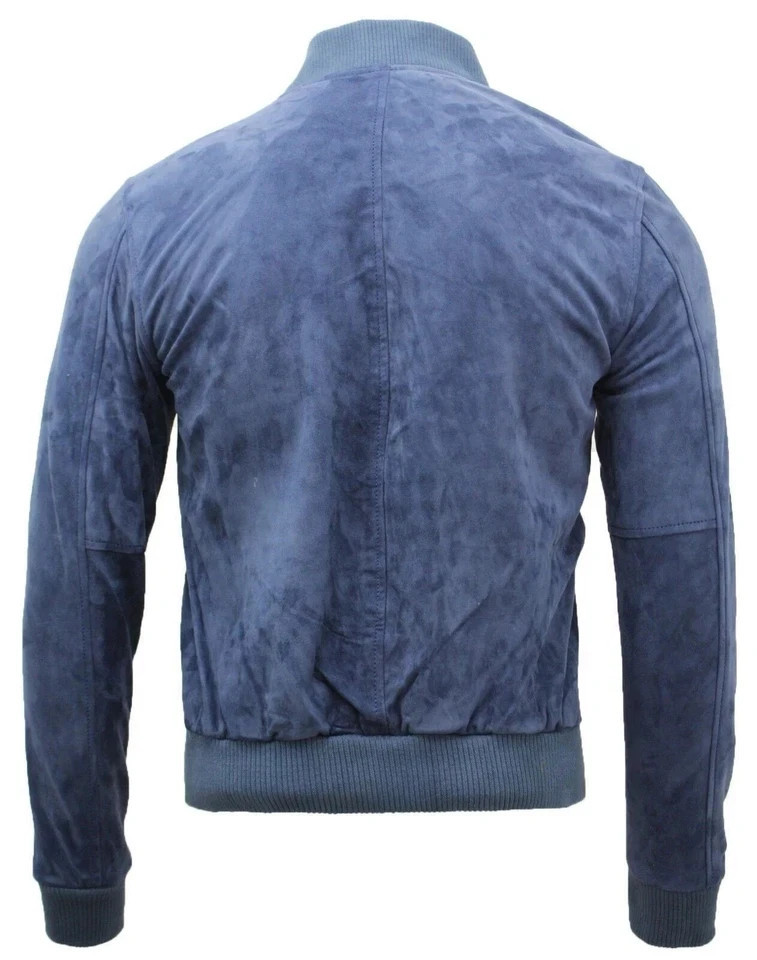 Suede Leather Handmade Royal Blue Men's Jacket Lambskin Biker Motorcycle Genuine