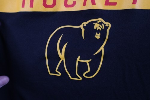 Graphics faded. Dark spots. Collar discolored. Issued to members of the hockey team. No COA