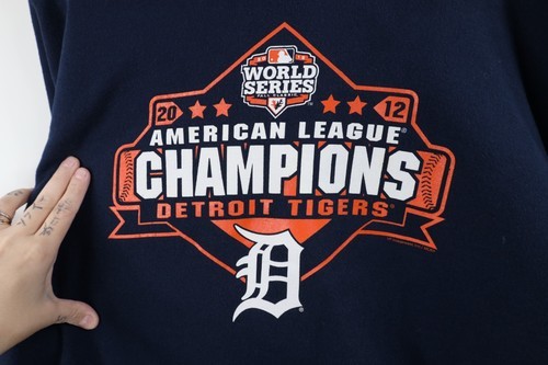 Vintage Y2K 2012 Mens XL Faded World Series Detroit Tigers Baseball Hoodie Blue