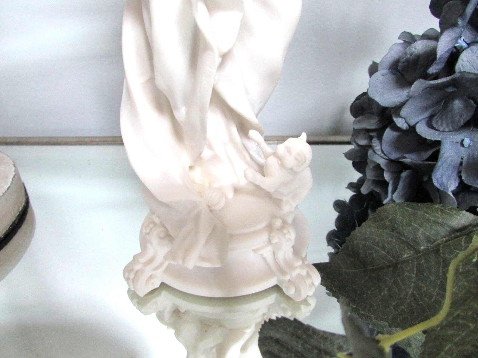 OBJETS D'ART PARIAN WARE PORCELAIN LADY W/ KITTEN LTD ED INTAGLIO 1990 WHITE 11"