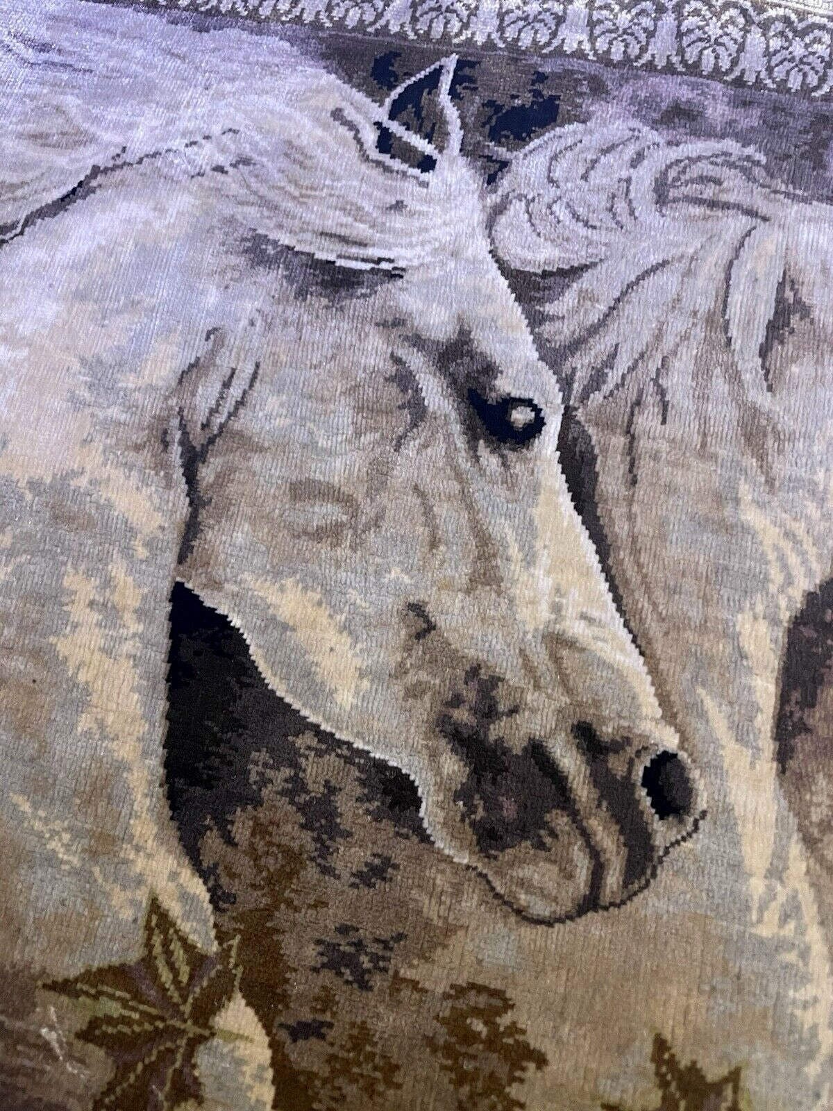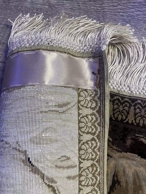 Handmade Vintage Turkish Hereke Silk Rug | 17" 11" (44 cm 30 cm) | 1970s Miniature Masterpiece of Silk Weaving This exquisite vintage Turkish Hereke silk rug from the 1970s distills Ottoman grandeur into a captivating small-scale format. Despite its modest 44 cm 30 cm dimensions, every square centimeter bursts with intricate detail, showcasing the legendary precision of Hereke's master weavers. Jewel-Box Precision in Silk Threads Woven with the finest silk threads, this miniature rug shimmers with a luminous quality that belies its size. The microscopic knot density - a hallmark of Hereke craftsmanship - renders floral motifs and geometric borders with museum-quality clarity, making it a conversational centerpiece. Versatile Elegance for Discerning Spaces Perfect as a wall hanging, desk mat, or display piece, this silk treasure brings Ottoman luxury to intimate settings. Its petite proportions (17" 11") allow placement in curated collections or as a standalone accent, radiating sophistication without overwhelming small spaces. Timeless Palette with Collector's Appeal A refined color scheme of ivory, sapphire blue, and gold flows through the design. These traditional hues - achieved through natural dye methods - possess a depth that enhances both modern and classic interiors with equal grace. Key Information Type: Handmade vintage Turkish Hereke silk rugOrigin: Hereke, TurkeyAge: 1970sMaterial: 100% pure silkTechnique: Hand-knotted with Hereke precisionColors: Ivory, sapphire blue, and goldCondition: Excellent vintage conditionDimensions: 17" 11" (44 cm 30 cm)
