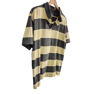 vtg y2k 90s No Boundaries 100% Cotton Wide Striped Polo Yellow/Green Sz men's XL 46/48 good well worn condition.