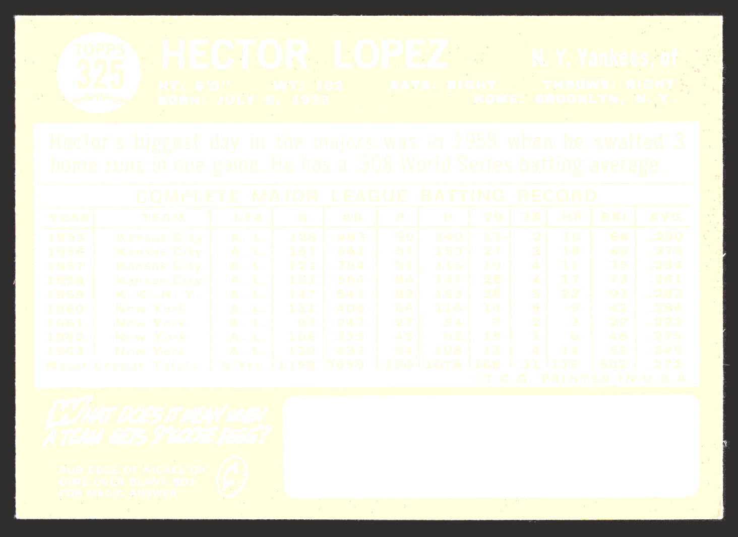 1964 Topps Baseball #325 Hector Lopez MLB and 50 similar items