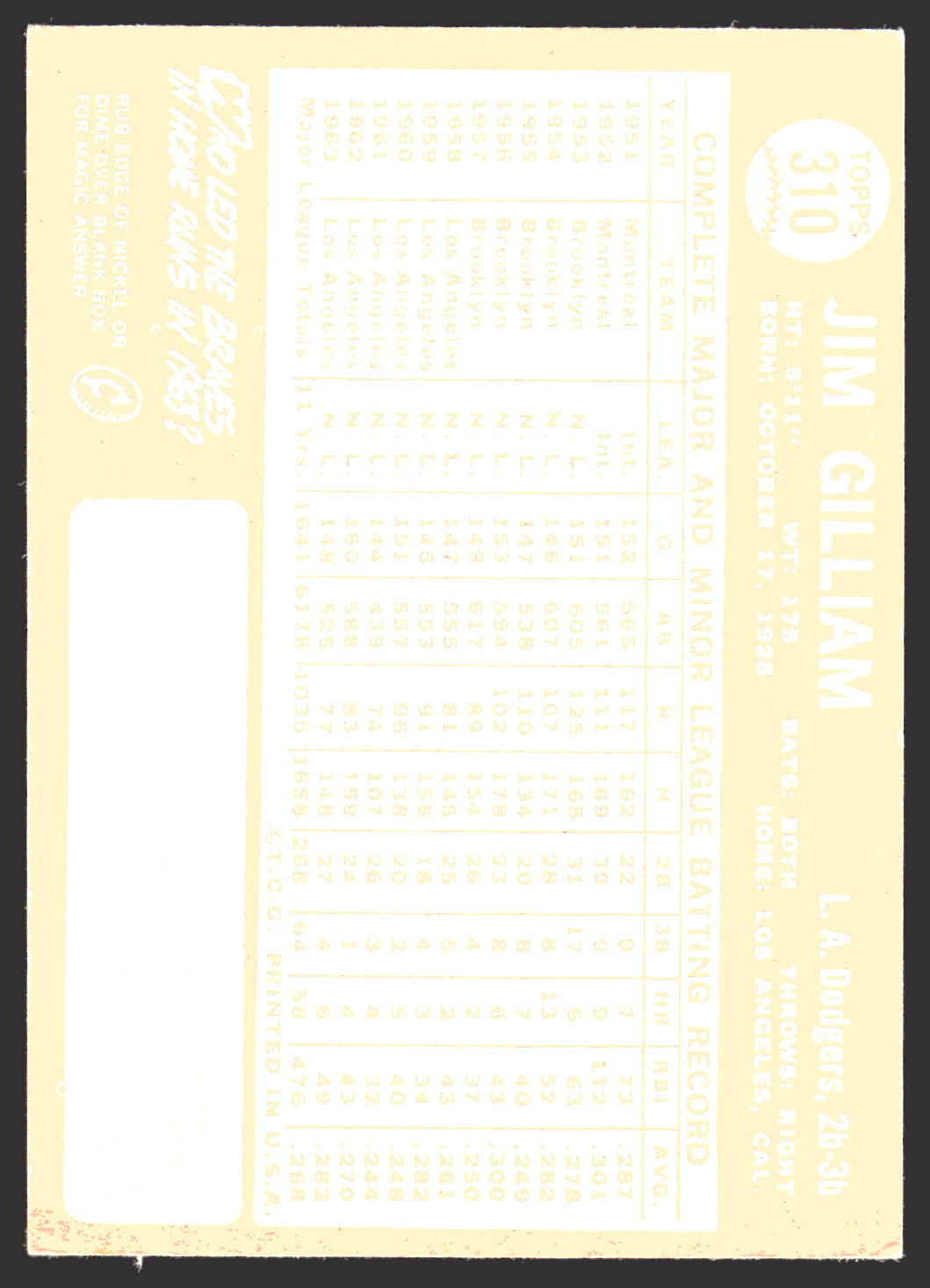 1964 Topps Baseball #310 - Jim Gilliam MLB and similar items