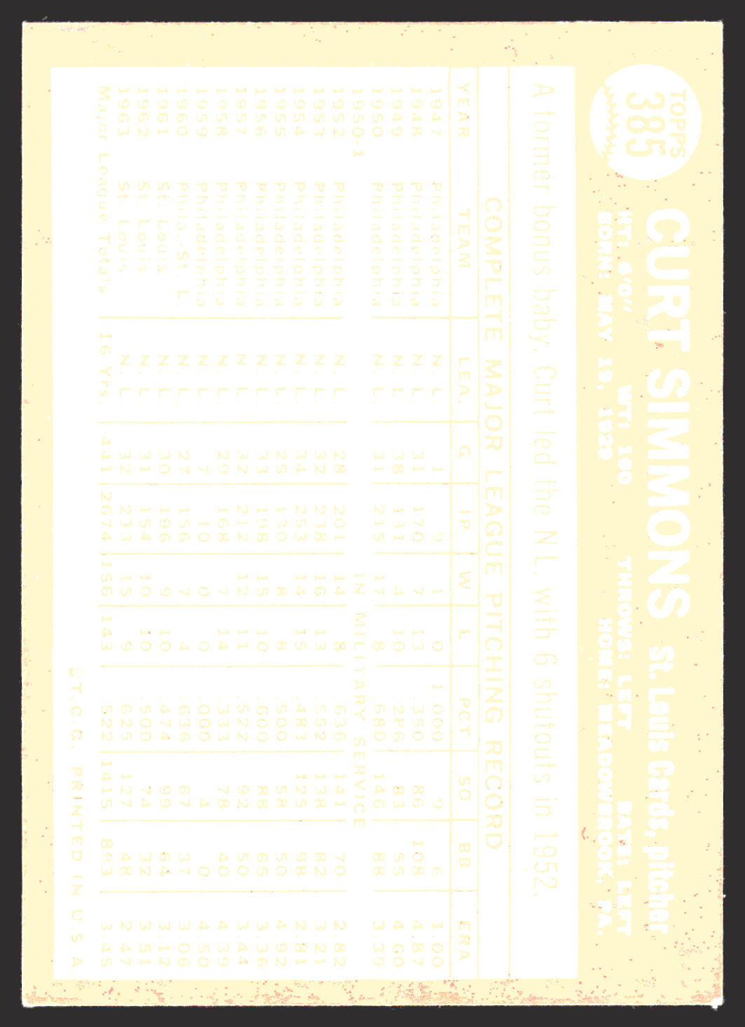 1964 Topps Baseball #385 Curt Simmons - MLB and similar items