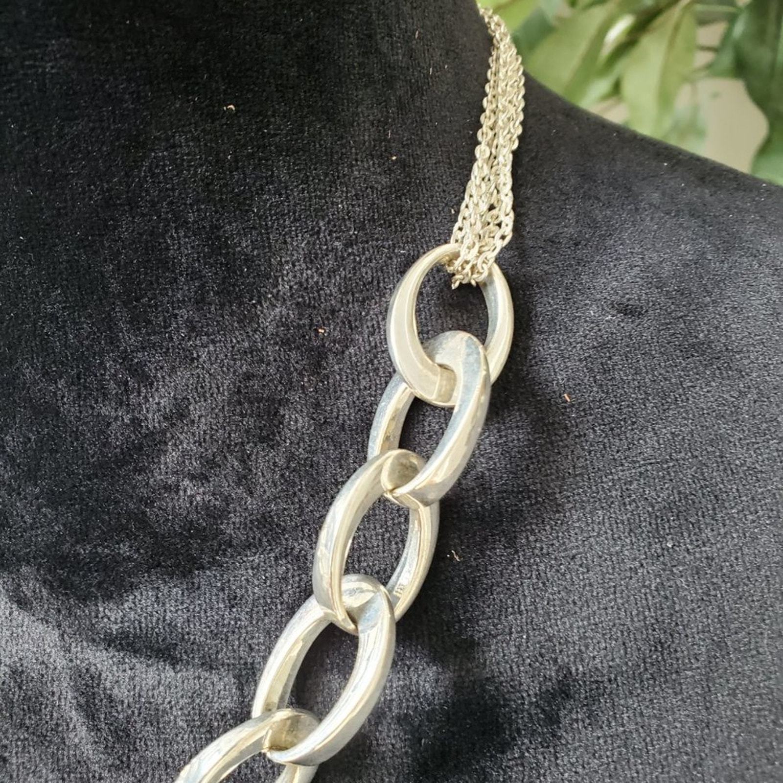 Alfani Womens Silver Tone Chokers Oval Links Long Chain