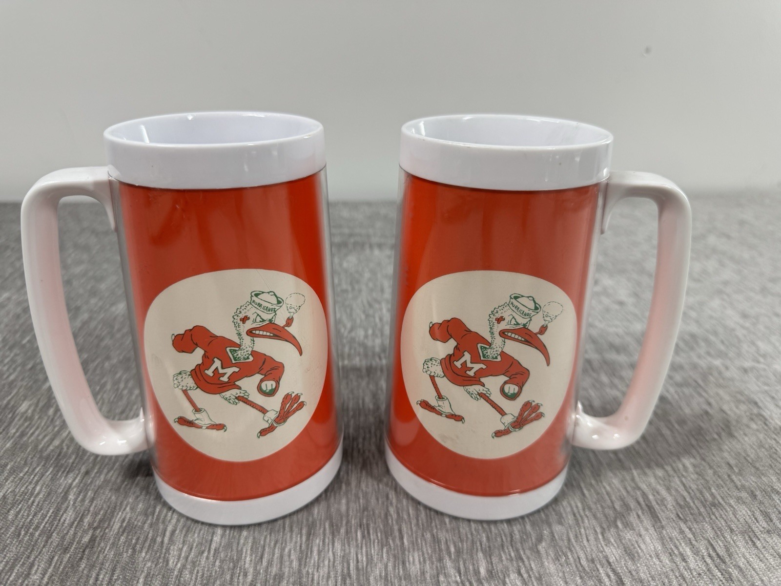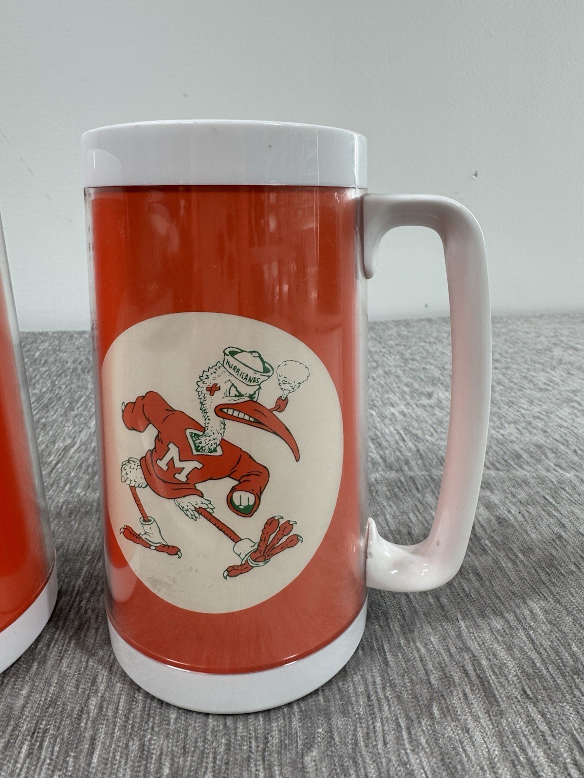 Vintage Miami Hurricanes Mugs Set of 2 Smoking Sebastian Mascot Thermo-Serv Lot